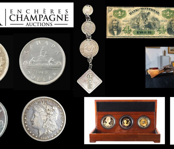 For more details on the items for sale, please contact us by phone at (438) 387-3100 or by email at info@enchereschampagne.com. We would also like to inform you that an exhibition will be open from June 13th, 2024 at our address at 430 rue de Bonsecours, Montreal, QC H2Y 3C4.
