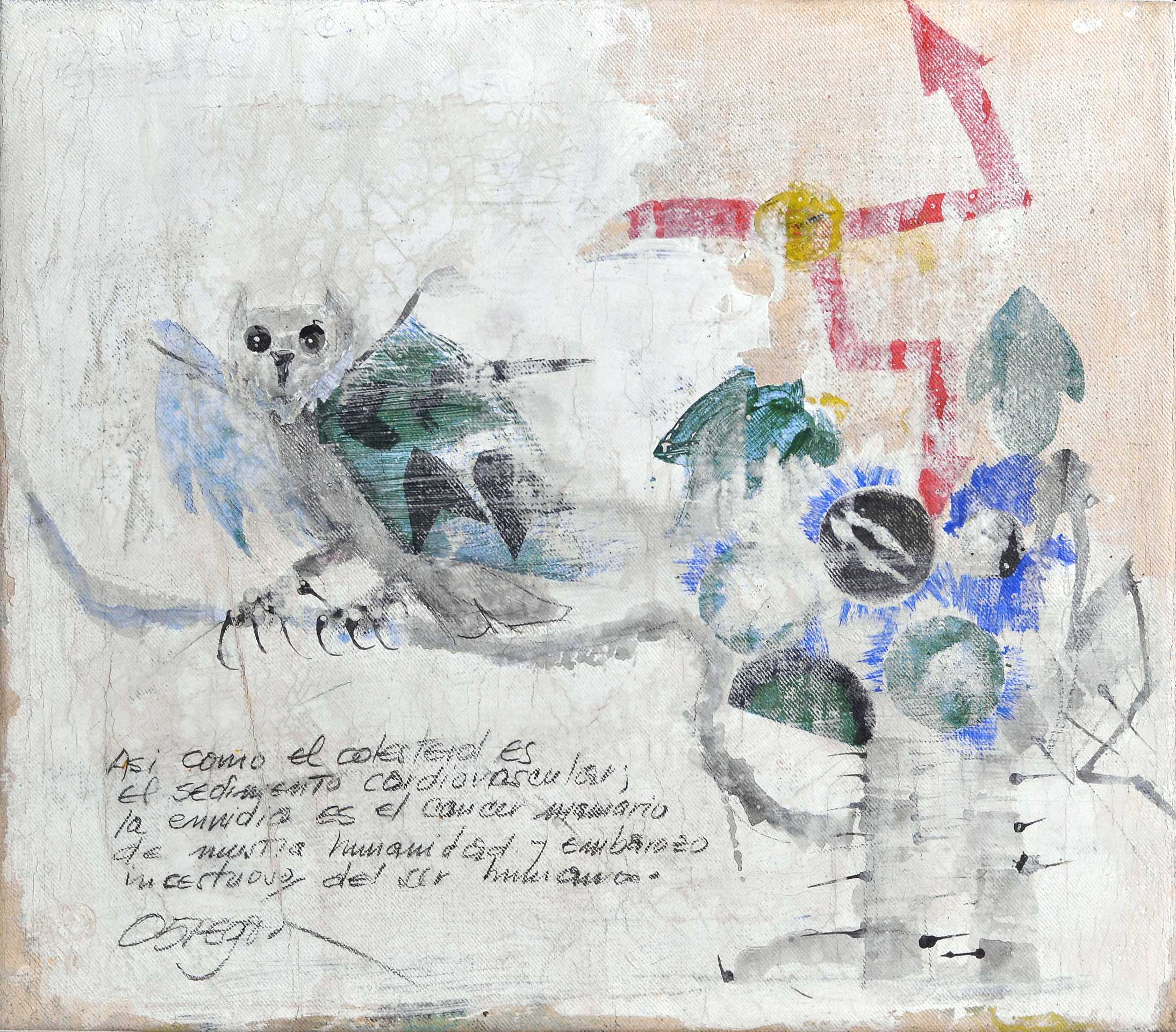 His technique is distinguished by broad, almost brutal brushstrokes and a dramatic use of color. His vibrant flat areas of color and rich textures create an atmosphere of pictorial “magical realism,” where the boundary between abstraction and figuration blurs.