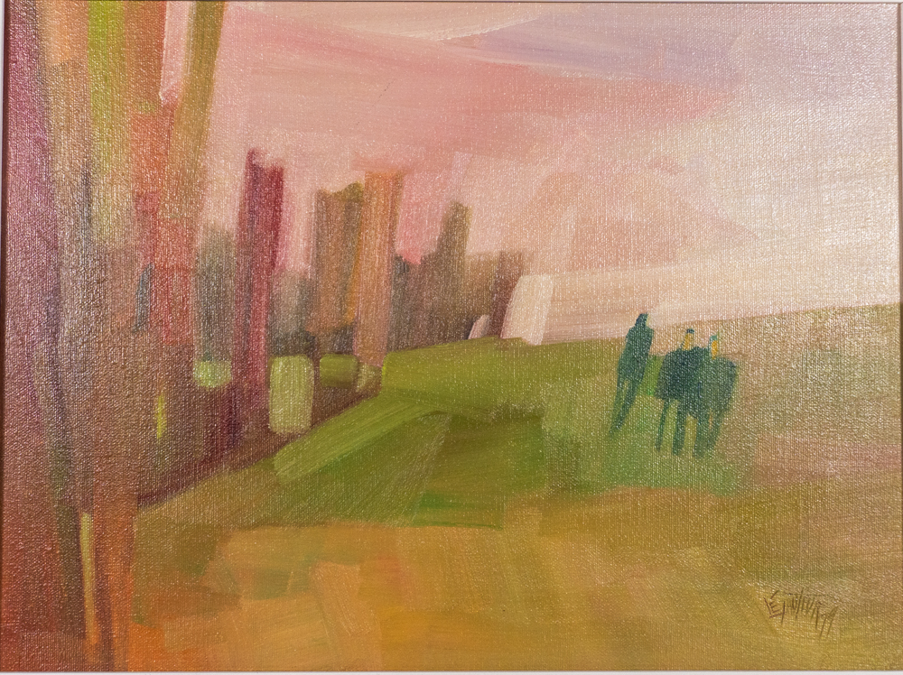 His paintings are constructed like architecture, with clean lines and simplified volumes that sometimes recall the style of high-level illustrators. His figures are often integrated into the landscape in an organic way, symbolizing a relationship of peace and respect with the land. A master of contrasts, he used a crisp light that defines forms and lends a sense of almost crystalline purity to his rural scenes.